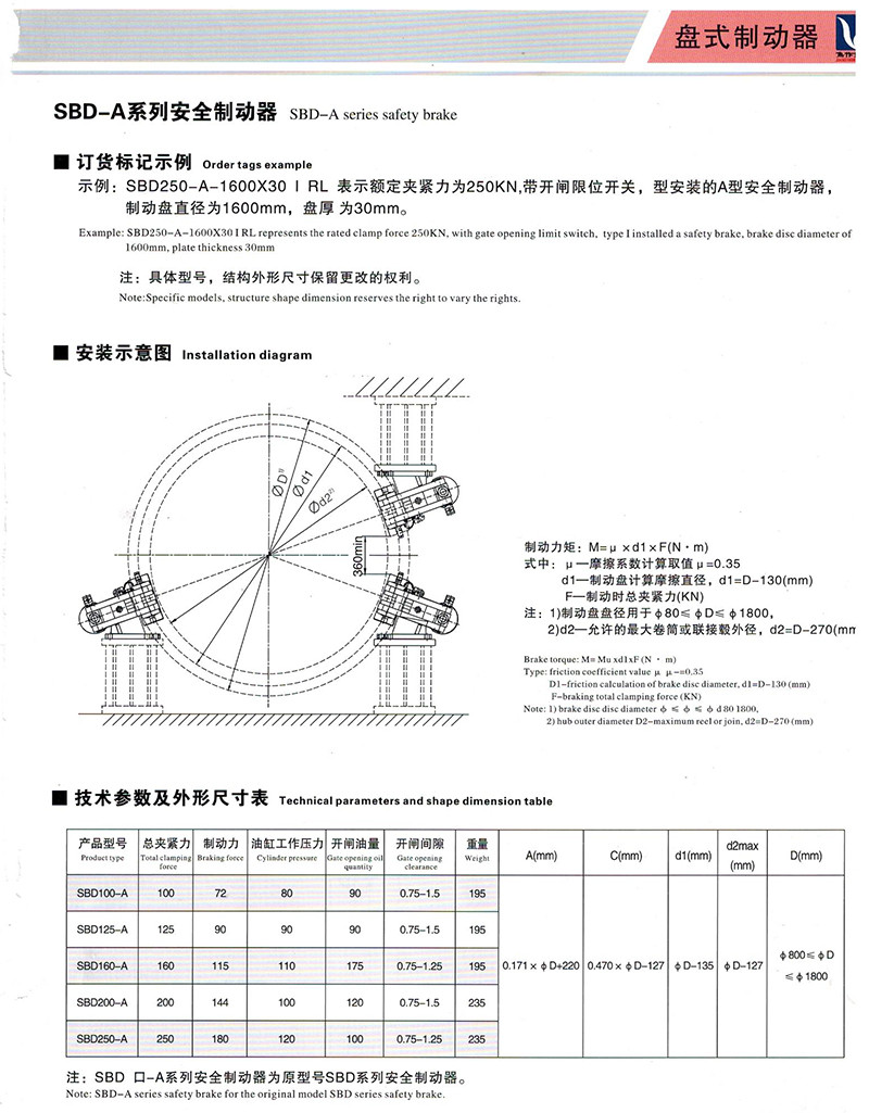YPZ2Ⅰ、Ⅱ、Ⅲ系列電力液壓臂盤式制動器